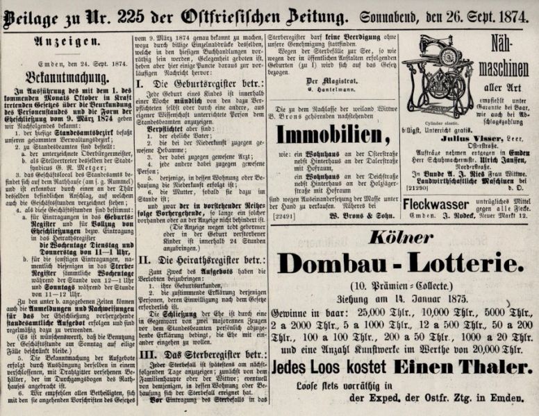 | 11:35, 12. Okt. 2025 | 1874 Standesamt OZ.jpg (Datei) | 136 KB | JPB (Diskussion | Beiträge) | Ostfriesische Tageszeitung, 1874 | 1 | |