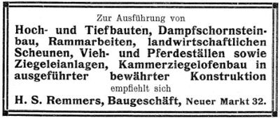 | 11:18, 12. Okt. 2025 | NeuerMarkt32 Remmers 1911.jpg (Datei) | 22 KB | Reproduktion durch JPB: Geschäftsanzeigen. Quelle: Adressbuch der Stadt Emden 1911. | 1 | |
