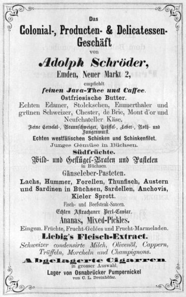 | 11:06, 12. Okt. 2025 | NeuerMarkt2 Schröder 1877.jpg (Datei) | 52 KB | Reproduktion durch JPB: Geschäftsanzeigen. Quelle: Adress- und Stadt-Handbuch der Stadt Emden 1877-1878. | 1 | |