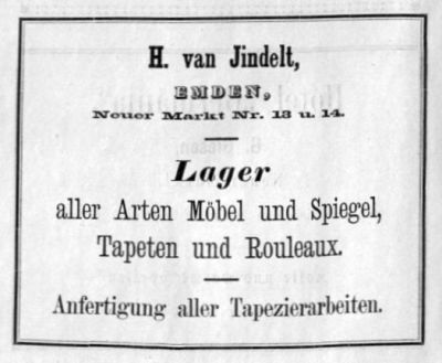 | 11:14, 12. Okt. 2025 | NeuerMarkt13-14 Jindelt 1877.jpg (Datei) | 21 KB | Reproduktion durch JPB: Geschäftsanzeigen. Quelle: Adress- und Stadt-Handbuch der Stadt Emden 1877-1878. | 1 | |
