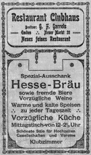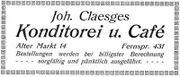 | 10:41, 12. Okt. 2025 | AlterMarkt14 Claesges-Cafe 1911.jpg (Datei) | 19 KB | Reproduktion durch JPB: Geschäftsanzeigen. Quelle: Adressbuch der Stadt Emden 1911. | 1 | |
