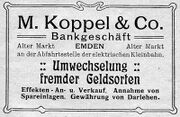 | 10:36, 12. Okt. 2025 | AlterMarkt5 Koppel-Bankgeschäfte 1906.jpg (Datei) | 33 KB | Reproduktion durch JPB: Geschäftsanzeigen. Quelle: Verein zur Förderung des Fremdenverkehrs (1906/1907): Kurzer Ratgeber und Führer durch Emden, Schwalbe, Emden. | 1 | |