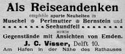| 11:15, 12. Okt. 2025 | NeuerMarkt15 Visser 1911.jpg (Datei) | 28 KB | Reproduktion durch JPB: Geschäftsanzeigen. Quelle: Adressbuch der Stadt Emden 1911. | 1 | |