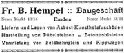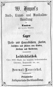 | 11:13, 12. Okt. 2025 | NeuerMarkt13-14 Hempel 1911.jpg (Datei) | 19 KB | Reproduktion durch JPB: Geschäftsanzeigen. Quelle: Adressbuch der Stadt Emden 1911. | 1 | |