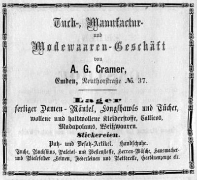 | 10:12, 14. Nov. 2025 | Neutorstr27-28 1866.jpg (Datei) | 43 KB | Reproduktion: JPB; Geschäftsanzeige; Herkunft/Quelle: Adressbücher Emden (Kopie von StadtA EMD, Handapparat). | 1 | |