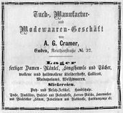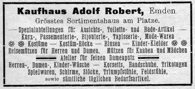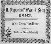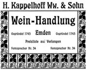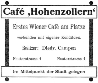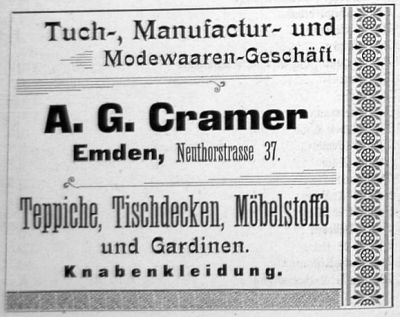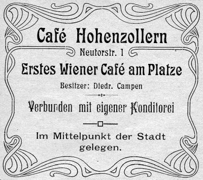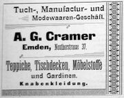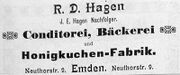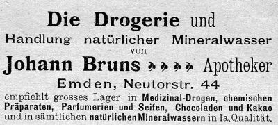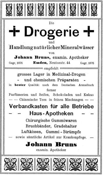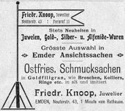 | 10:20, 14. Nov. 2025 | Neutorstr44 1906.jpg (Datei) | 24 KB | Reproduktion: JPB; Geschäftsanzeige; Herkunft/Quelle: Verein zur Förderung des Fremdenverkehrs (1906): Kurzer Ratgeber und Führer durch Emden; Verlag: Schwalbe, Emden. | 1 | |