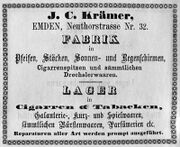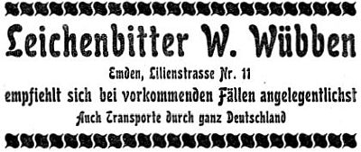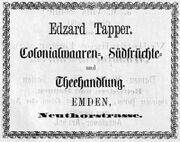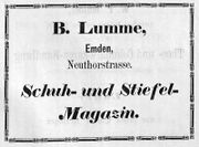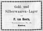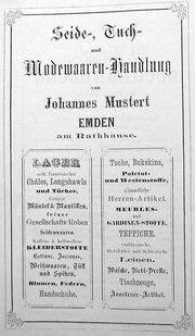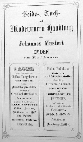 | 10:05, 14. Nov. 2025 | Neutorstr6 1877.jpg (Datei) | 31 KB | Reproduktion: JPB; Geschäftsanzeige; Herkunft/Quelle: FÜRBRINGER, Leo (1877): Adreß- und Stadt-Handbuch der Stadt Emden 1877-1878, Emden. | 1 | |