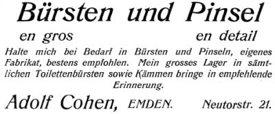 | 10:13, 14. Nov. 2025 | Neutorstr32 1911.jpg (Datei) | 30 KB | Reproduktion: JPB; Geschäftsanzeige; Herkunft/Quelle: Adreßbuch der Stadt Emden und der Gemeinde Wolthusen 1911 (erworbenes Digitalisat). | 1 | |