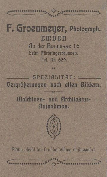 Herkunft: Lexikon der Fotografen, http://www.fotorevers.eu/de/. Mit freundlicher Genehmigung zur Verwendung auf der Website von Emden-Historisch (eMail vom 17.12.2025).