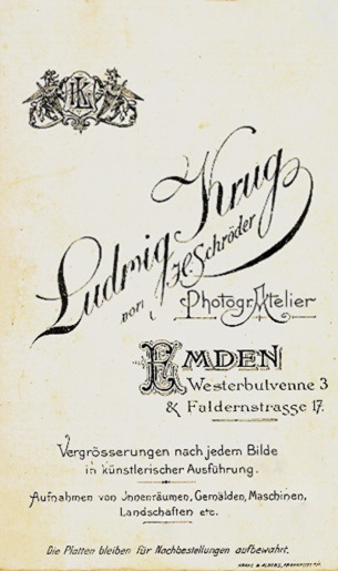 Herkunft: Lexikon der Fotografen, http://www.fotorevers.eu/de/. Mit freundlicher Genehmigung zur Verwendung auf der Website von Emden-Historisch (eMail vom 17.12.2025).