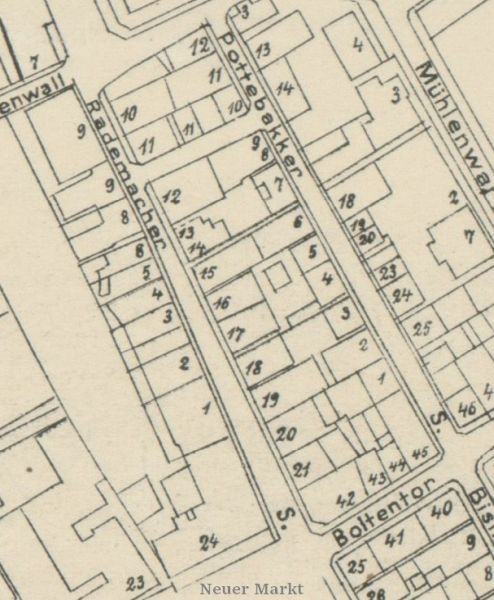 Reproduktion/Auszug JPB: Stadtplan Emden, 1911, Verlag Walter Schwalbe († 1930) Emden, (gezeichnet von Stadtbautechniker H. Braa).