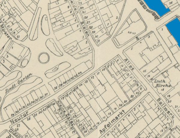Auszug aus: Stadtplan Emden, 1911, Verlag Walter Schwalbe († 1930) Emden, (gezeichnet von Stadtbautechniker H. Braa)